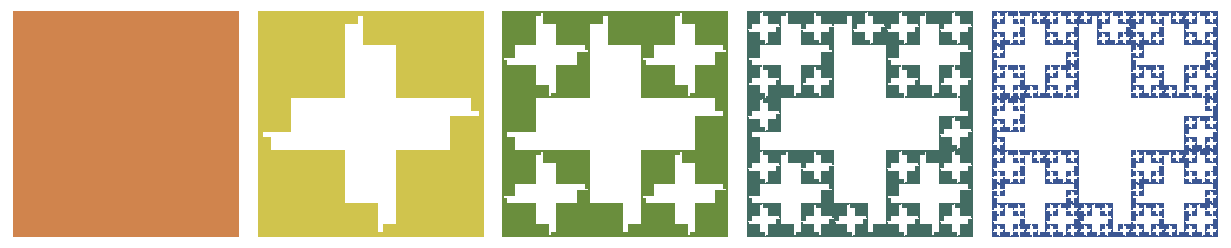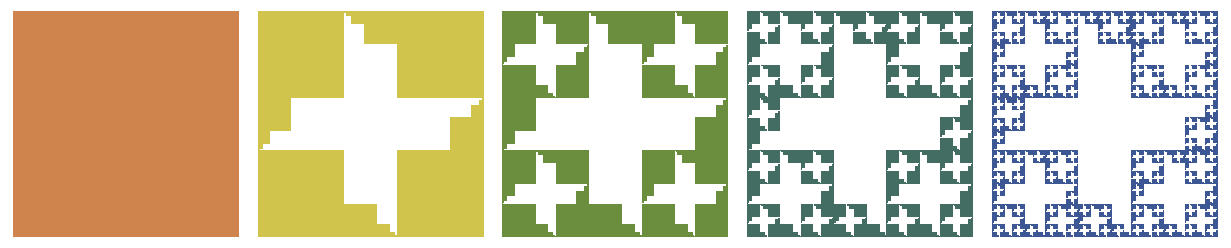 In this style, the crosses added at each step are all the same size. Live and let live. Here are inverse figures of the previous, in case you’re interested: