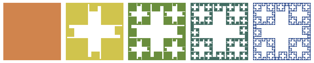 After that, repeat the process of scaling, copying, and translating, and the limiting figure is the Cross Menger square, or Jerusalem square, depending on whom you ask.