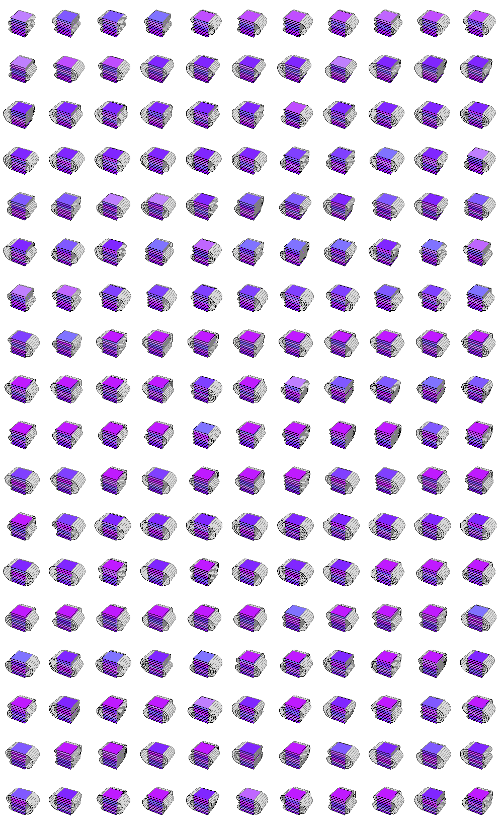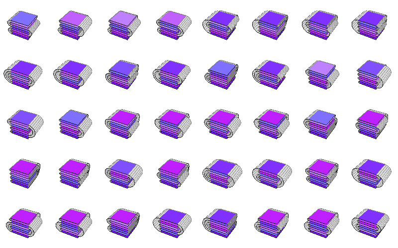 Of course it’s not a straightforward binary tree for other shapes: For a 3×2 map, there are 60 distinct foldings, 10 with each of the six panels on top. The following figures show the 10 foldings that have the lower-left panel on top.