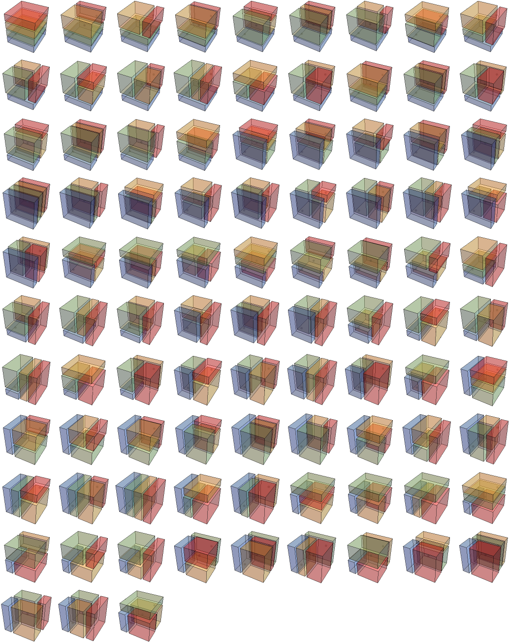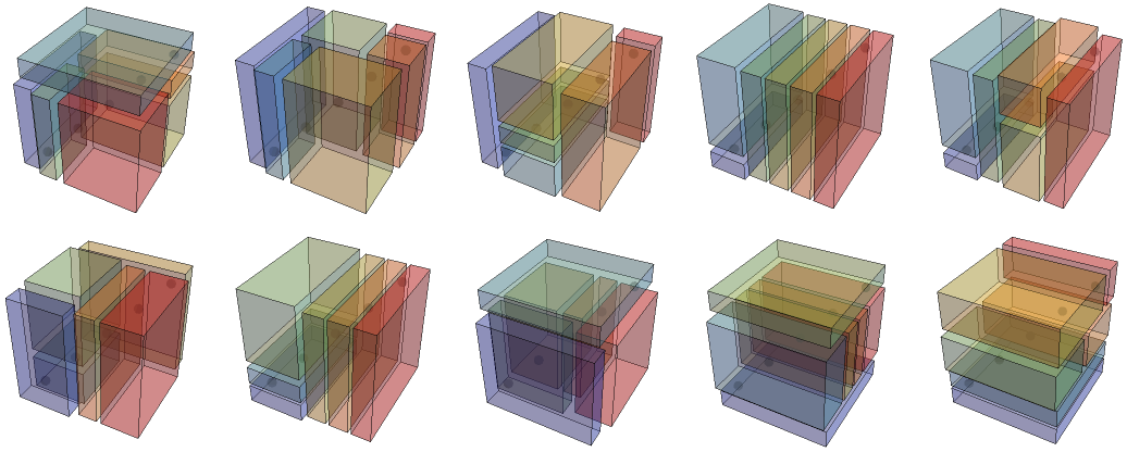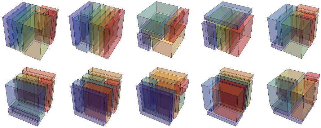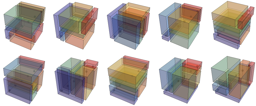 Here’s a 3D analog to 2D Schröder rectangulations, also called 3D guillotine partitions.